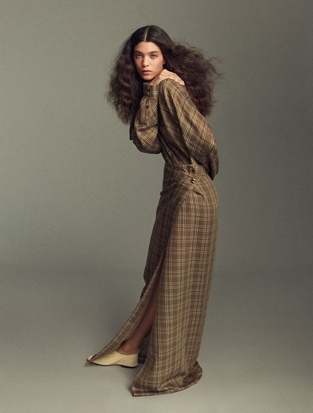 La mannequin is 1m79 (5'10) tall and wears a size 2.